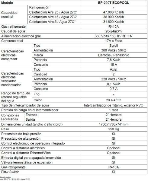 Uso Verano: Temp de la piscina a 28°C y la temp de ambiente es superior a 25°C.