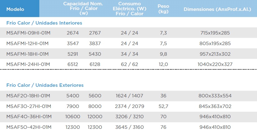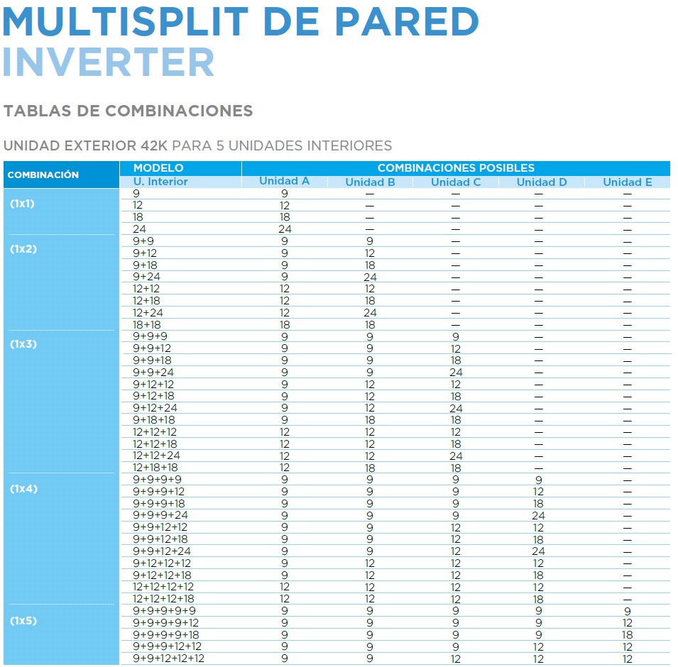 • Hasta 5 unidades interiores y 10580 Frig/h